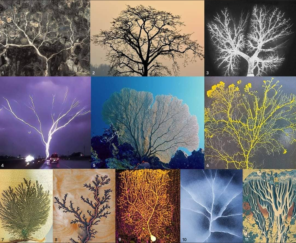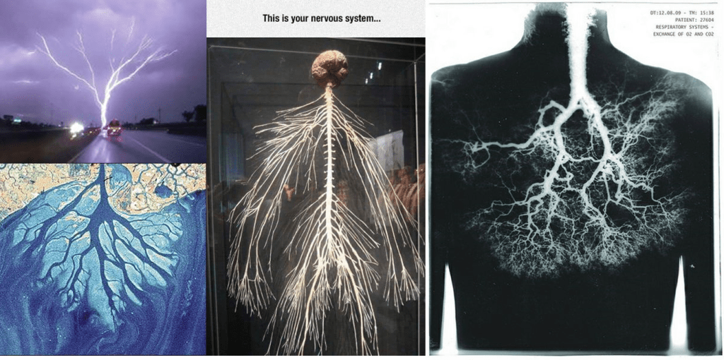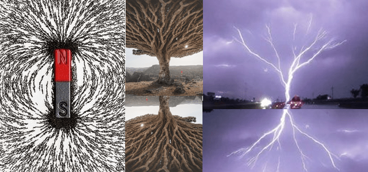 Considerable similarities of electric current carving its fractal way through wooden material compared to a landscape seen from above, our lung structure, corals, coast-line patterns, the branching of a tree or lightning strike.