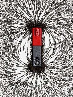 N&S attractive poles: iron filings has horizontal connections, ferrocell no horizontal connections.
